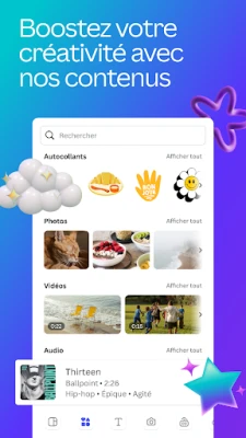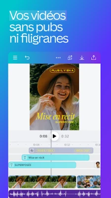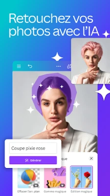 Plongez dans l'art de l'image et du mouvement. Le module de retouche photo de **Canva** vous permet de sublimer chaque cliché : ajustez la luminosité, le contraste, la saturation, ou optez pour une mise au point automatique qui mettra en valeur votre sujet, le tout sans la moindre publicité ni filigrane. Pour vos projets dynamiques, l'éditeur vidéo transforme votre appareil mobile en un studio de production. Réalisez des montages professionnels, intégrez des animations fluides, superposez pistes audio et voix off, et jouez avec des transitions élégantes et des effets de flou pour masquer les détails indésirables. Vos récits visuels n'ont jamais été aussi captivants.