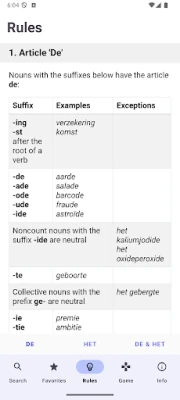 L'apprentissage est un parcours personnalisé. Grâce à la fonction de favoris, conservez précieusement les mots les plus complexes ou les plus intéressants pour les réviser à votre rythme. Et pour démystifier le genre des noms, souvent perçu comme arbitraire, l'application vous dévoile des règles fondamentales et astucieuses. Ces principes simples vous offriront une compréhension plus profonde, vous aidant à naviguer avec confiance dans les méandres grammaticaux.