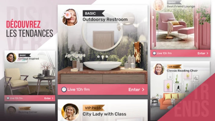 Plongez dans l'univers captivant de la décoration intérieure avec Design Star: Home Makeover, l'application où vos idées prennent vie. Chaque jour, un nouveau défi créatif vous attend, vous invitant à transformer des espaces variés tels que chambres, salons, cuisines ou salles de bain. Laissez libre cours à votre imagination en sélectionnant parmi une vaste gamme de meubles et d'accessoires décoratifs, tous inspirés par les dernières tendances et les styles les plus convoités. C'est l'occasion rêvée d'exprimer votre style unique et de concevoir des intérieurs qui reflètent parfaitement votre vision.