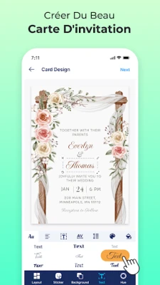 **Invitation Maker & Card Design** est conçu pour la simplicité et l'accessibilité. Son interface intuitive garantit une expérience de création fluide et agréable pour tous, quels que soient vos talents en design. Une fois vos chefs-d'œuvre achevés, partagez-les sans effort avec vos proches via e-mail, les réseaux sociaux ou vos applications de messagerie préférées. Totalement gratuite et compatible avec tous les appareils Android, cette application met la joie de la création personnalisée à portée de main, faisant de chaque invitation un souvenir précieux bien avant l'événement.