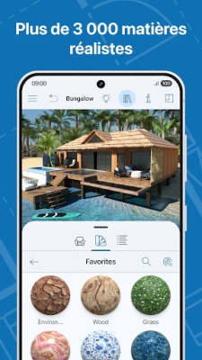 Plongez au cœur de la conception grâce à la facilité de création de plans précis et à la modélisation 3D intuitive. Avec Live Home 3D, esquissez des agencements détaillés, positionnez portes et fenêtres avec exactitude, et observez votre vision prendre forme en trois dimensions. Explorez ensuite une bibliothèque exhaustive d'éléments de décoration, allant du mobilier aux appareils électroménagers, en passant par une multitude de textures et de matériaux pour personnaliser chaque recoin avec un style unique. Ne vous arrêtez pas aux murs : concevez également vos espaces extérieurs, des jardins luxuriants aux terrasses invitantes, en intégrant arbres, piscines et clôtures, le tout enrichi par la géolocalisation et un éclairage dynamique pour une immersion totale.