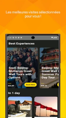 Plongez dans un univers de découvertes avec un planificateur de voyage intelligent qui façonne des itinéraires quotidiens sur mesure. Plus besoin de chercher : **Pékin Guide de Voyage** regroupe une sélection minutieuse des activités les plus prisées et des visites guidées hautement évaluées, toutes réservables instantanément. Que vous rêviez d'une immersion culturelle à travers des promenades pédestres commentées, d'une vue d'ensemble avec des tours de ville panoramiques, ou de la flexibilité des trajets en bus à arrêts multiples, chaque option est à portée de clic pour construire l'aventure qui vous ressemble.